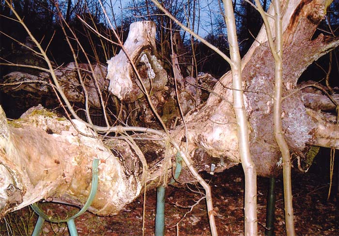 von ein paar Metallstangen, aber umgeben von jungen Trieben. Die